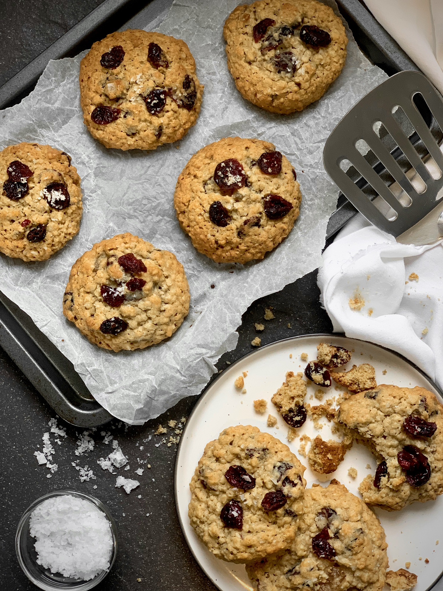 They’re soft-bellied and spicy from the nuggets of sugar crystallised ginger, smoky and salty from the streaks of salted maple, and sour and moreish from the sharp bursts of cranberry.
