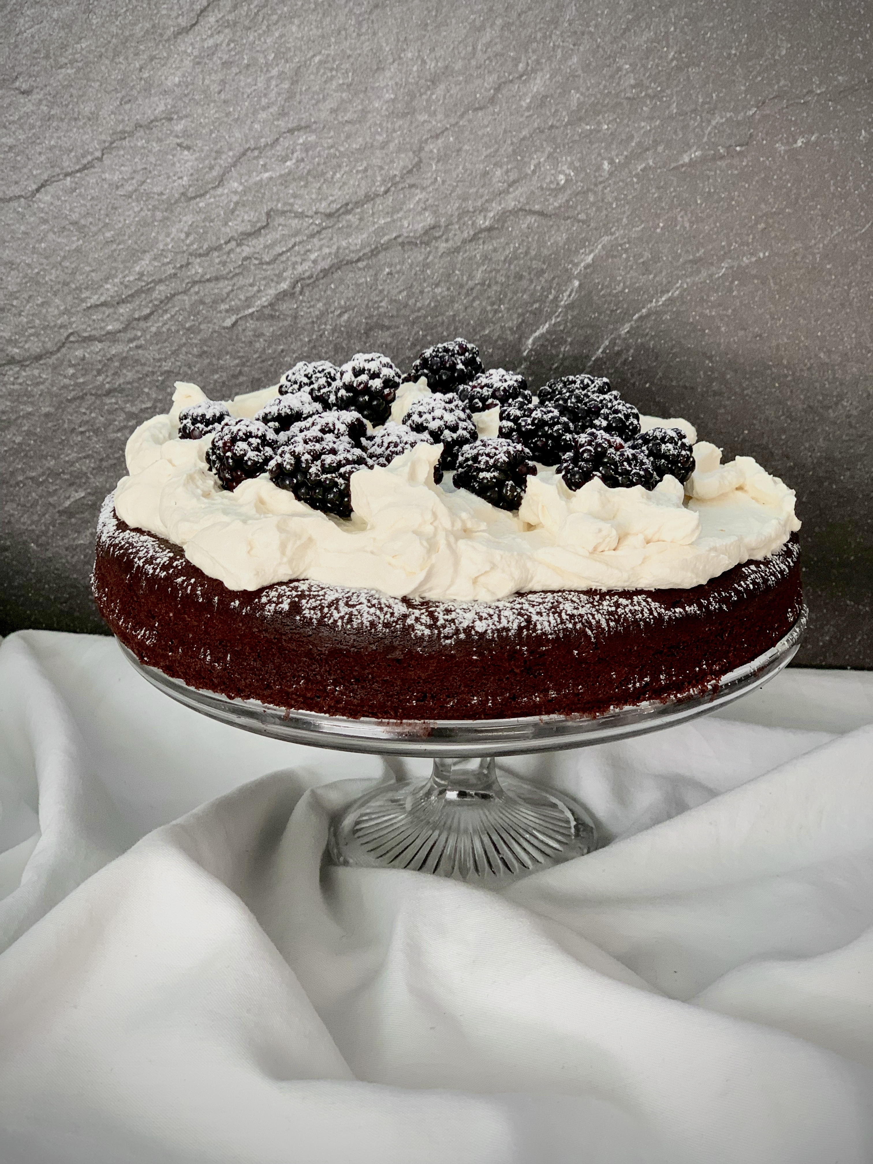 And don’t feel confined to just blackberries. This would work quite lovely with some raspberries or even some sliced figs dusted with a little icing sugar. There’s something about the sharp, fresh, sweetness of the fruit on top of this cake that punches through the warm, dark, deep richness of the chocolate and spice combination.