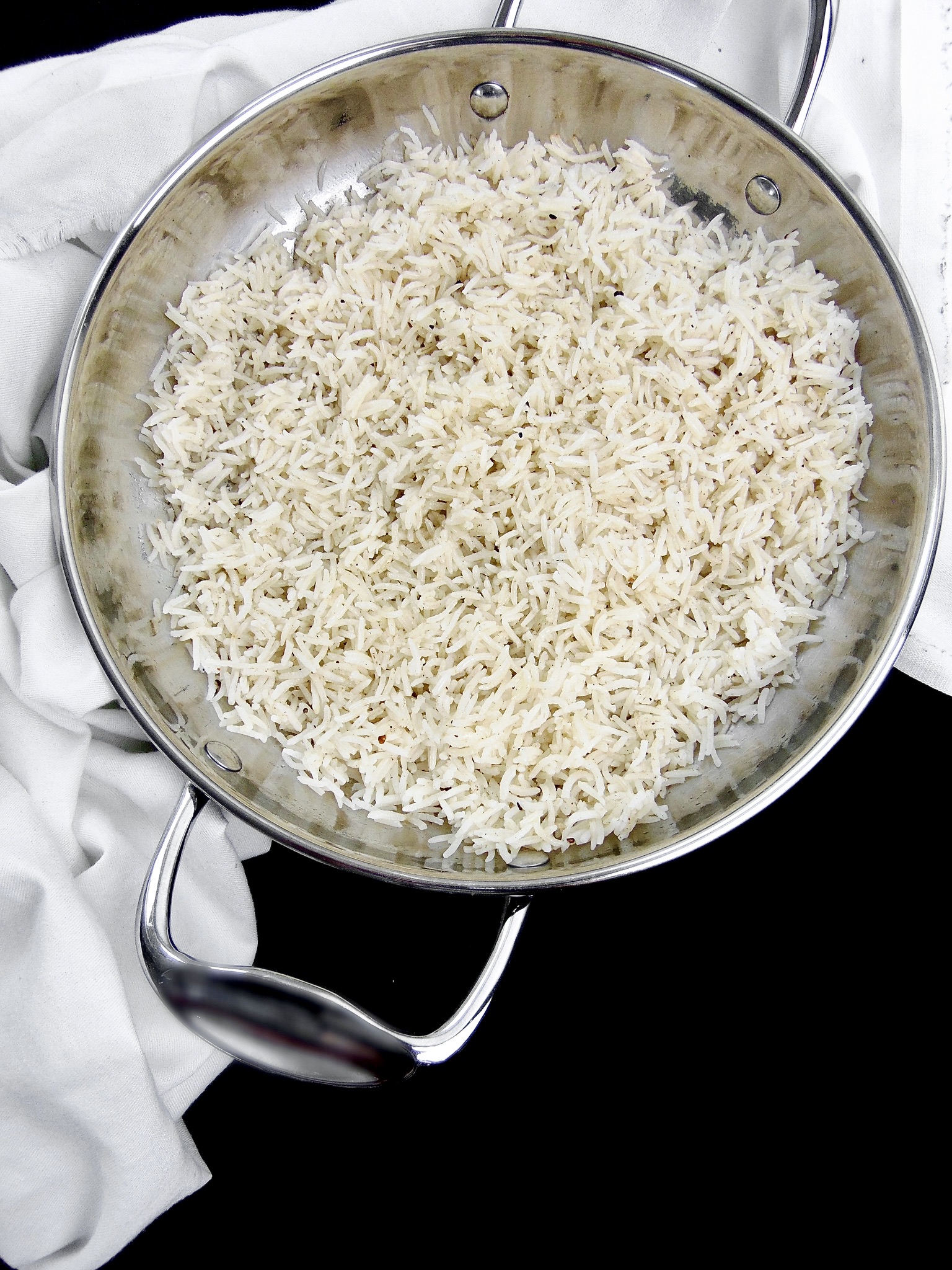 For this, all you need to do is add 250g long-grain rice, a tablespoon of unsalted butter, a pinch of salt and pepper and ¼ teaspoon ground cardamom to a small roasting dish.