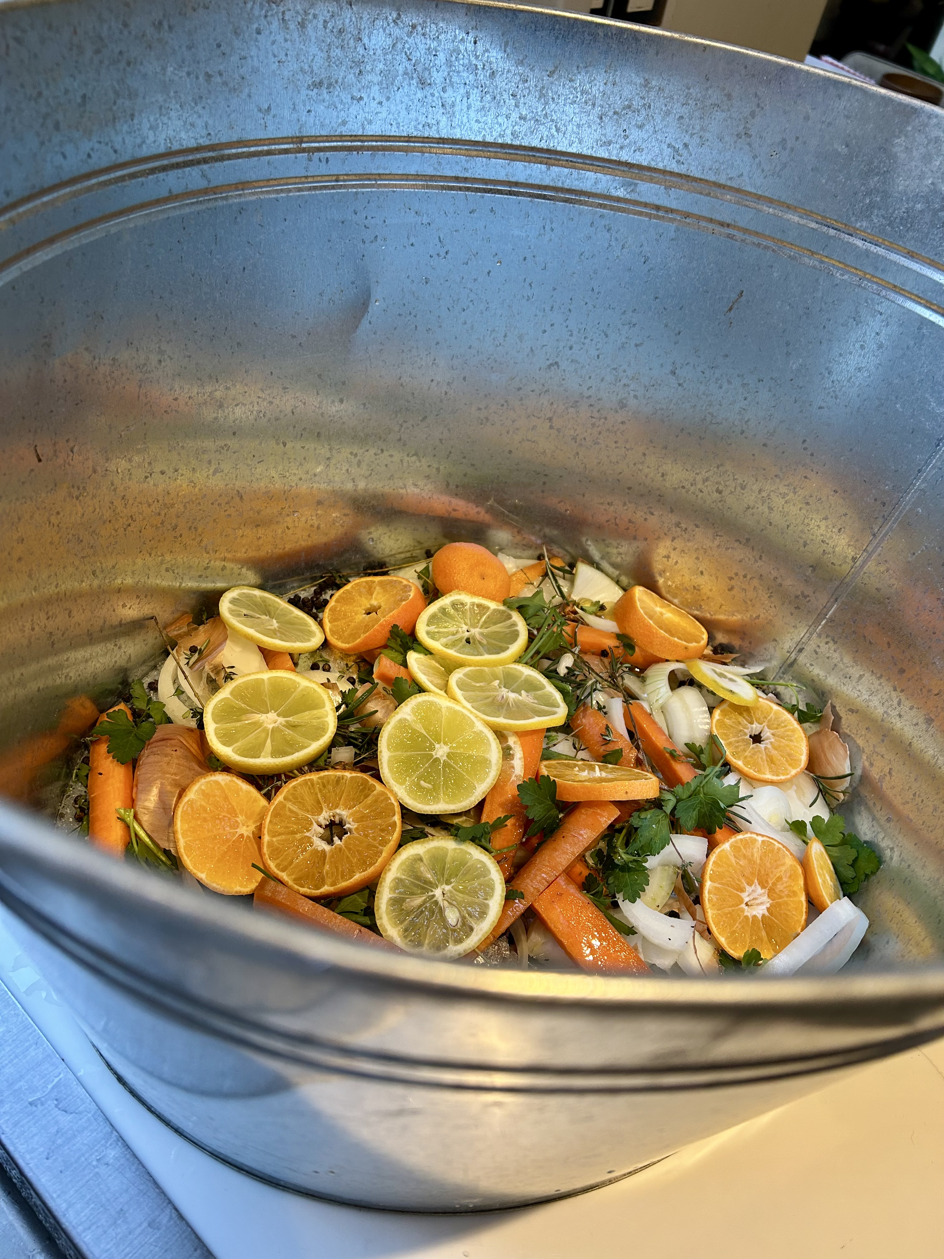 I would definitely use this brine throughout the year, don’t get me wrong, but there’s also something cozy and special about keeping it for this time of year that feels celebratory. Like ‘oh, there he goes with the big, metal tub. It must be Christmas.’ And yes… yes it is Christmas, and there are certain things you wait for to summon in that time of year. Some people wait for the Coca Cola advert, I wait until we bust out the big tub.
